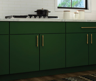 - Green Cabinets – Earthy tones shine with black, gold, or oil-rubbed bronze.