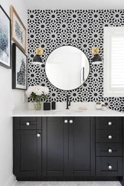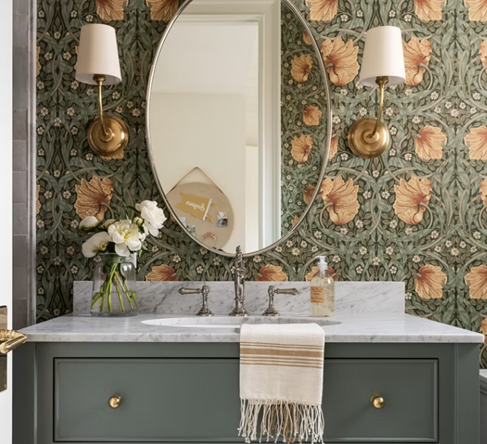 An easy way to transform your powder room is with wallpaper. Whether you choose a dramatic floral, modern geometric, or coastal inspired print, wallpaper instantly adds personality and visual interest.