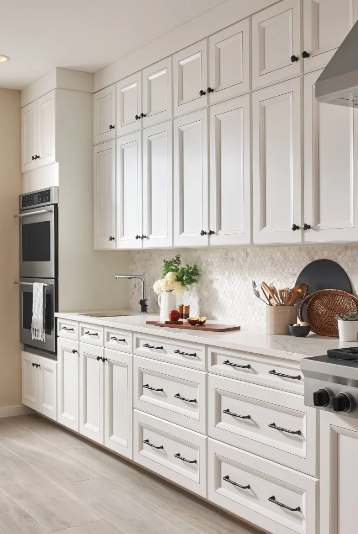- White Cabinets – A blank canvas. Anything goes! Try black for contrast, gold for warmth, or chrome for a sleek touch.